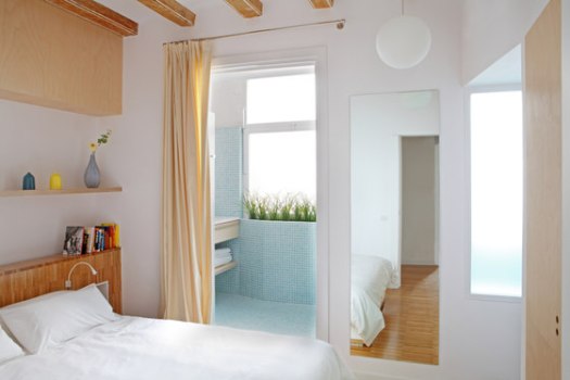 Il primo appartamento, “Piso Pujades11”, colpisce immediatamente per i toni del blu acceso delle piastrelle grafiche della cucina. Il salotto, grazie a divani reversibili e tende divisorie si trasforma in zona notte per gli ospiti, con un secondo bagno centrale a disposizione. La camera da letto invece è un’ambiente semplice e rilassante, con un bagno di pertinenza che funge da piccola area benessere privata.